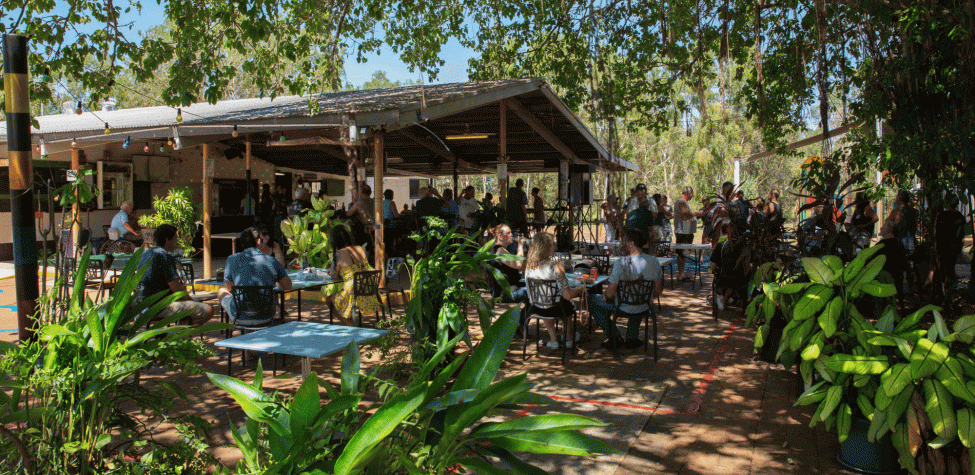 We are a community supported Bar and Restaurant at Wagait Beach. Meet friendly locals over a cold beer and enjoy a fantastic meal from our menu or daily specials. Watch the sun set behind the Banyan Trees of Wagait Beach and enjoy the music over a free game of pool, whilst your kids play safely in the adventure playground.